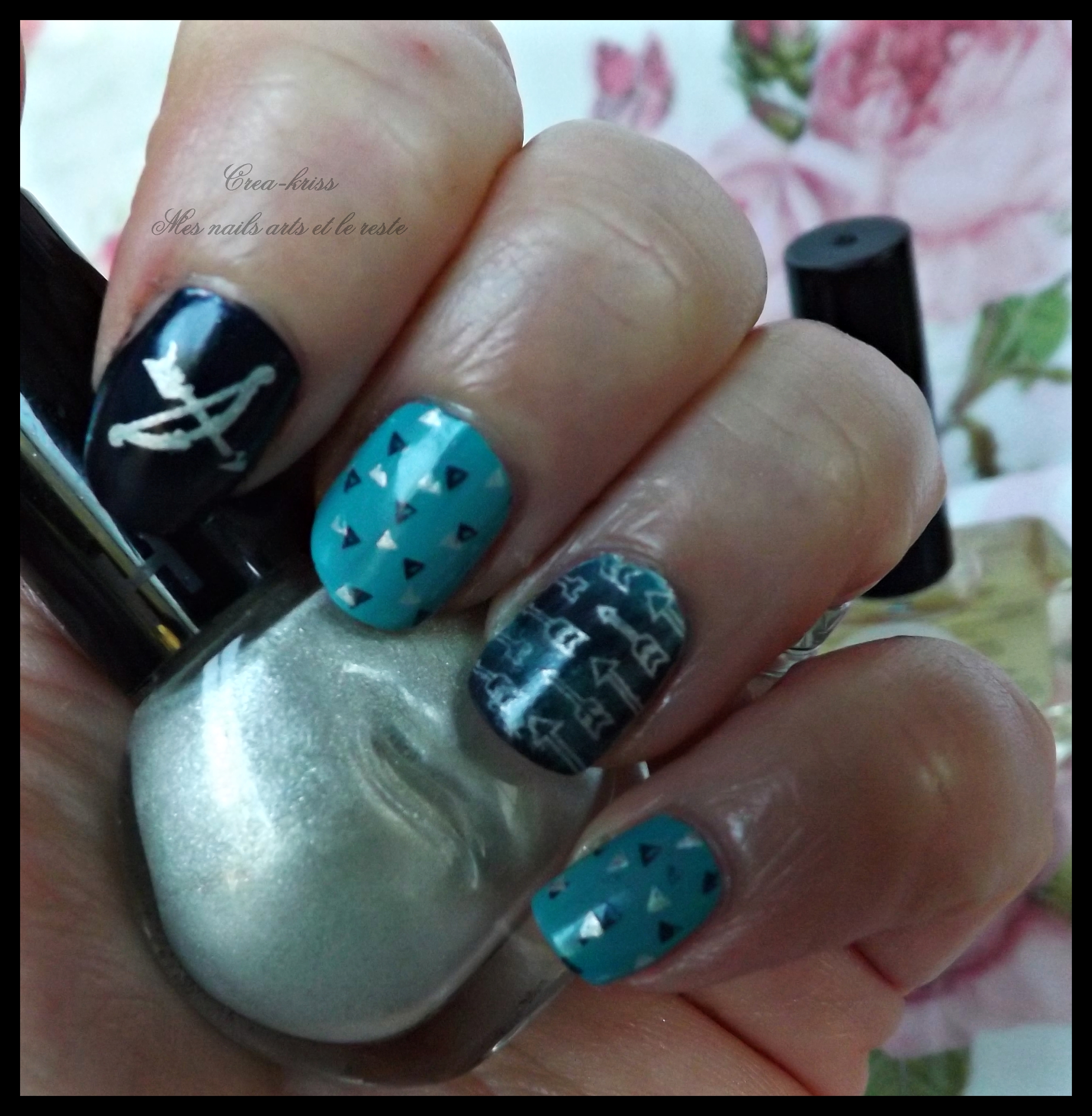 Pour le majeure et l’auriculaire j'ai fait un double stamping avec le motif pointe de flèche.